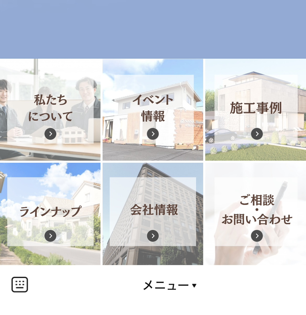 LINE公式アカウントの「リッチメニュー」を活用すれば、家づくりに関する情報をひと目で分かりやすく整理できます。